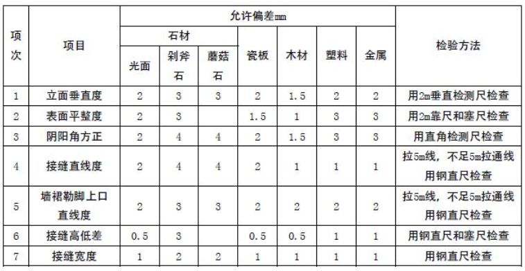 4、門窗套安裝的允許偏差和檢驗方法如下